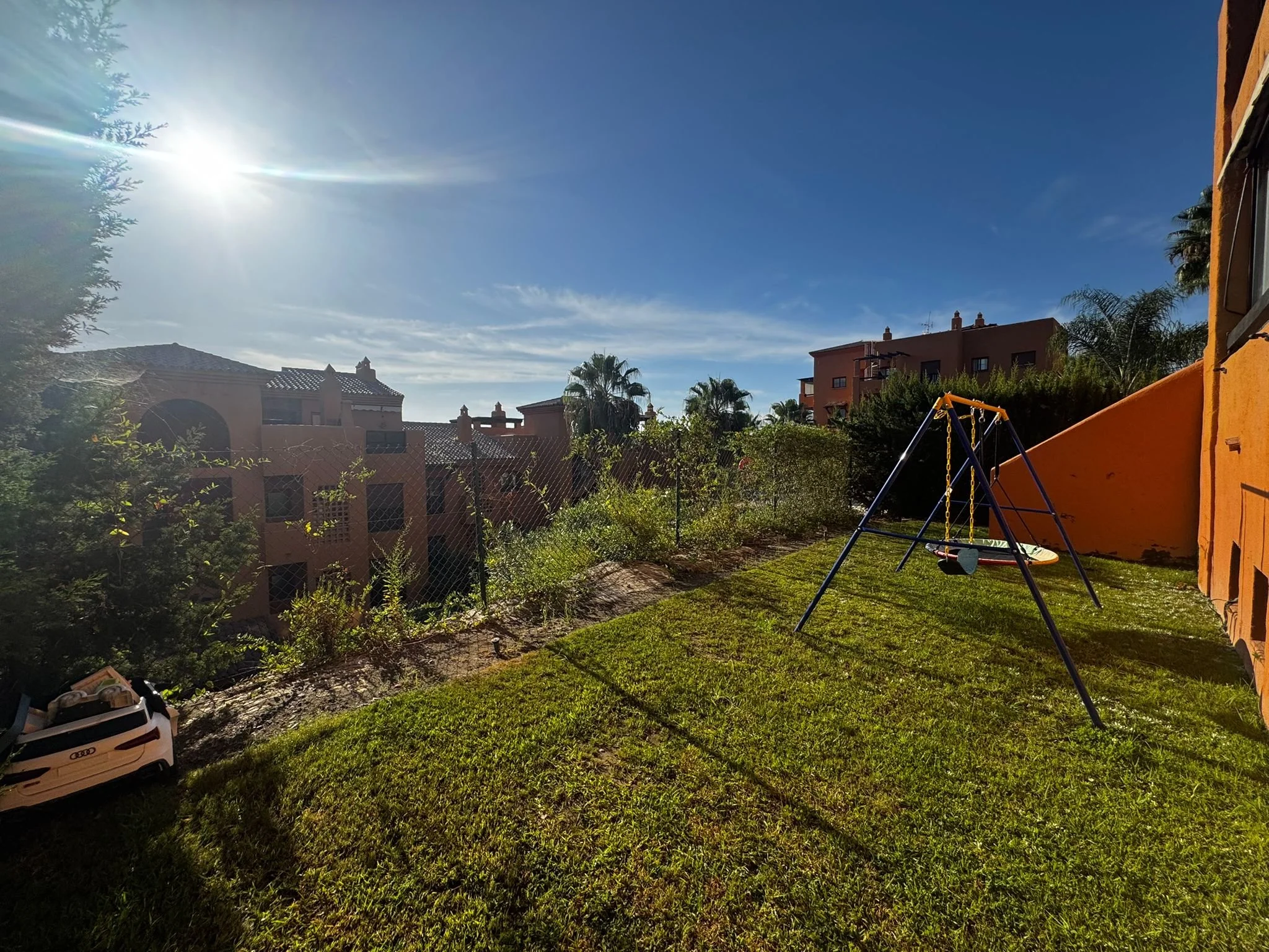 La propiedad cuenta con 124 m² construidos y una distribución funcional que incluye un amplio salón-comedor con acceso a una terraza cubierta, cocina totalmente equipada con lavadero independiente y dos baños renovados, uno de ellos en suite. Desde la terraza se disfrutan vistas directas a la piscina y al jardín privado de 20 m², mantenido por la comunidad.